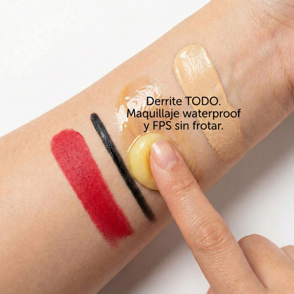 Eliminó máscara waterproof y protector solar resistente sin necesidad de frotar.